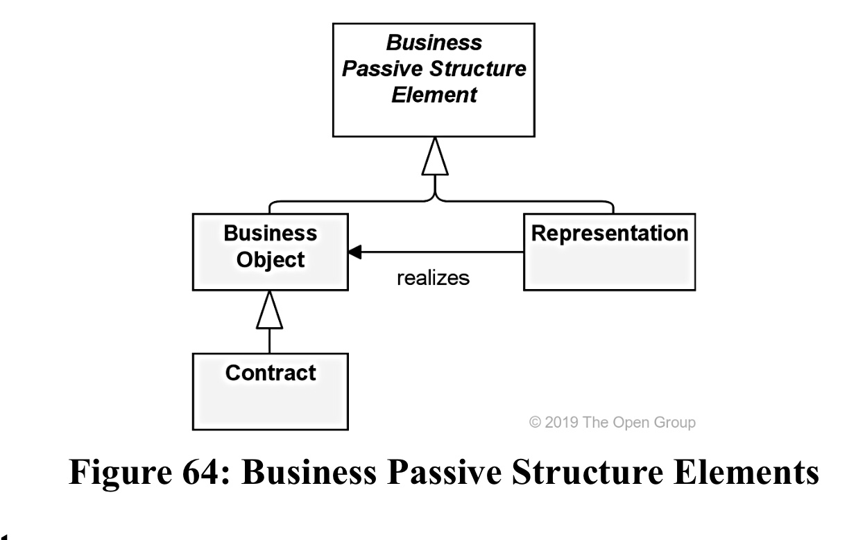 Een BO kan ook een association, specialization, aggregation of een composition relatie hebben met andere BO’s. Een BO kan realized worden door een representation of een Data Object of beide.