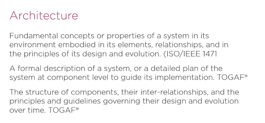 • Wat is “architecture” in the context van de TOGAF standaard?