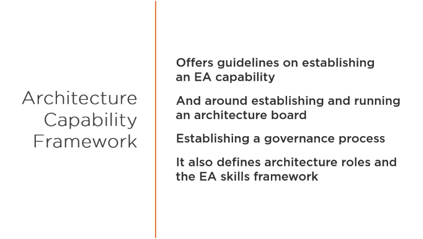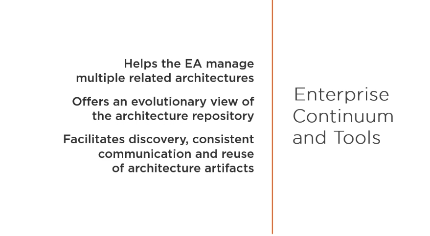 Het kan gebruikt worden voor het ontwikkelen van een uitgebreid aantal verschillende  Enterprise Architectures. Het is aanvullend, en kan gebruikt worden samen met, andere raamwerken dat meer de focus hebben op een specifieke oplevering voor bepaalde verticale sectoren, zoals Overheid, Telecommunicatie, Productie, Defensie en bijvoorbeeld Financiën. Een belangrijk onderdeel van de TOGAF standaard is de methode – de TOGAF Architecture Development Method (ADM) – voor het ontwikkelen van een Enterprise Architectuur dat de business benodigdheden adresseert.